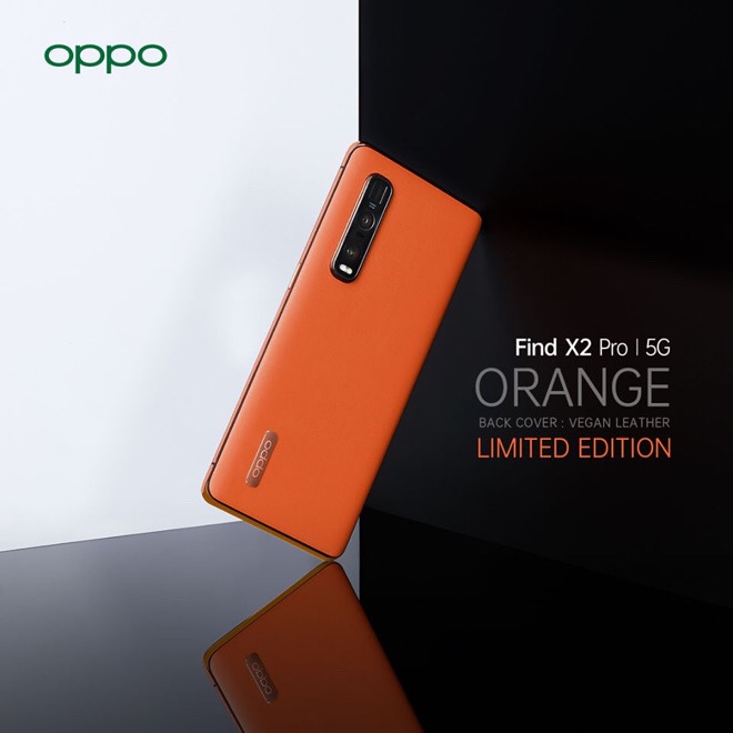 OPPO Find X2 Pro 5G สีใหม่ Orange (Vegan Leather) Limited Edition สมาร์ทโฟนสุดยอดนวัตกรรม RAM 12GB ROM 512GB บนชิปเซ็ตล่าสุด Snapdragon 865 พร้อมวางจำหน่ายอย่างเป็นทางการแล้ววันนี้ ในราคา 40,990 บาท ณ OPPO Brand Shop ทุกสาขา, ร้านค้าออนไลน์ OPPO Official Store และตัวแทนจำหน่ายทั่วประเทศ