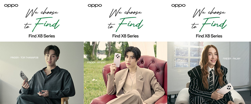 ออปโป้ ไทยแลนด์ ผู้นำตลาดสมาร์ตโฟน เปิดตัวสมาร์ตโฟนแห่งปี “OPPO Find X8 Series” กับมาตรฐานแฟลกชิปที่เหนือกว่า ชวนเหล่า Finder คนดังแถวหน้าของวงการ อาทิ ต่อ – ธนภพ, กลัฟ – คณาวุฒิ และช่างภาพฝีมือเยี่ยมอย่าง ตั้ม – ชนิพล ช่างภาพจากเพจ Rockkhound, จูน – จิตสุภา จากเพจ Escape to และ แพร – รัมภาพร มาร่วมสัมผัสประสบการณ์ซูมที่ดีที่สุดให้ภาพที่สวยงามใกล้กว่าที่เคย ด้วยเทคโนโลยี AI Telescope Zoom ซูมไกลถึง 120 เท่า และ Hasselblad Portrait Mode ถ่ายภาพบุคคลได้สมจริงเหนือชั้น สมาร์ตรอบด้านจาก AI Photo Remaster และ AI Productivity ให้ช่วยปรับแต่งภาพและทำงานได้อย่างชาญฉลาดบนระบบปฏิบัติการ ColorOS 15 มอบประสบการณ์ใช้งานที่ราบรื่น ตอบโจทย์ผู้ใช้ยุคใหม่ได้อย่างลงตัว ในดีไซน์บางเบาเรียบหรูเหนือกาลเวลา