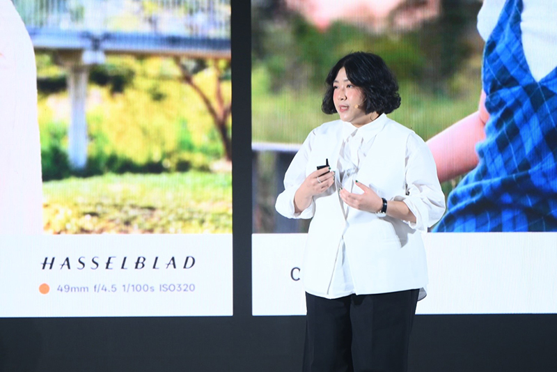 ขณะที่ แพร รัมภาพร เล่าถึงประสบการณ์ถ่ายภาพพอร์ตเทรตที่พาเธอไปพบเจอกับช่วงเวลาอันน่าประทับใจ แพรเล่าว่า “เคยได้มีโอกาสถ่ายภาพพอร์ตเทรตกลางแจ้ง ซึ่งเป็นงานที่ต้องการความสวยงามของแสงธรรมชาติ พอใช้ Hasselblad Portrait Mode มันทำให้สามารถสร้างภาพที่มีโบเก้เป็นธรรมชาติสุดๆ สีสันของภาพ แสงแฟลร์ก็สามารถเก็บได้ดี รวมไปถึงรายละเอียดของเส้นผมของตัวแบบ เหมือนเรานำพลังของเลนส์โปรมาอยู่ในมือถือ ระยะโฟกัสที่หลากหลายช่วยให้การถ่ายภาพมีมิติมากขึ้น อย่างระยะ 35 มม. ให้ภาพที่ดูละมุนและเล่าเรื่อง ส่วนระยะ 85 มม. เหมือนพาเราเข้าใกล้อารมณ์และความรู้สึกของตัวแบบโดยไม่ต้องเดินเข้าไปกวน ทำให้บรรยากาศในภาพดูอบอุ่นและเป็นธรรมชาติ เหมือนกับว่าเราเป็นผู้ชมที่ได้เข้าไปนั่งดูโมเมนต์นั้นจริงๆ”