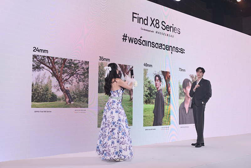 เปิดตัวด้วย ต่อ ธนภพ ปรากฏตัวในงานอีเวนต์ด้วยลุคคุณพระสุดเข้มขรึม พร้อมโชว์ฉากหนึ่งในบทบาทจากละคร “หนึ่งในร้อย” ที่สื่อถึงความรักอันหอมหวานกลางแดนซ์ฟลอร์ ซึ่งได้รับการถ่ายทอดอย่างสมจริงผ่านการซูมภาพที่ดีที่สุดของ OPPO Find X8 Series ที่จับทุกความรู้สึกในแววตาและท่าทางของต่อได้อย่างใกล้ชิด ทำให้ผู้ชมรู้สึกเชื่อมต่อและเข้าถึงตัวละครได้อย่างเต็มอารมณ์ ต่อได้กล่าวถึงประสบการณ์แบบ Ultra Experience ที่ได้สัมผัสครั้งนี้ว่า “ผมว่า OPPO Find X8 Series เจ๋งตรงที่ทำให้เราเห็นรายละเอียดชัดเจนได้ขนาดนี้ พอซูมไปเรื่อยๆ ด้วย AI Telescope Zoom รายละเอียดก็ยังคมชัดอยู่ ต่อให้ซูม 120 เท่าก็ยังไหว โดยเฉพาะเวลาไปดูคอนเสิร์ตครั้งหนึ่งที่ได้ซื้อบัตรนั่งไกลกว่าที่อยากได้ ความท้าทายคือจะถ่ายภาพอย่างไรให้เห็นศิลปินแบบใกล้ๆ แม้จะไม่ได้อยู่ติดขอบเวที พอได้เปิด Stage Mode ที่ทำงานกับฟีเจอร์ AI Telescope Zoom ของ OPPO Find X8 Series ที่ซูมได้ถึง 20x หรือ 30x โดย AI ทำหน้าที่เติมเต็มรายละเอียดของภาพระหว่างการซูม ทำให้ได้เก็บภาพการแสดงของศิลปินและบรรยายกาศที่น่าประทับใจได้ชัดเจนทั้งแสงสี และบรรยากาศเหมือนอยู่แถวหน้า กลายเป็นประสบการณ์ที่เหนือกว่าที่เคยได้สัมผัส
