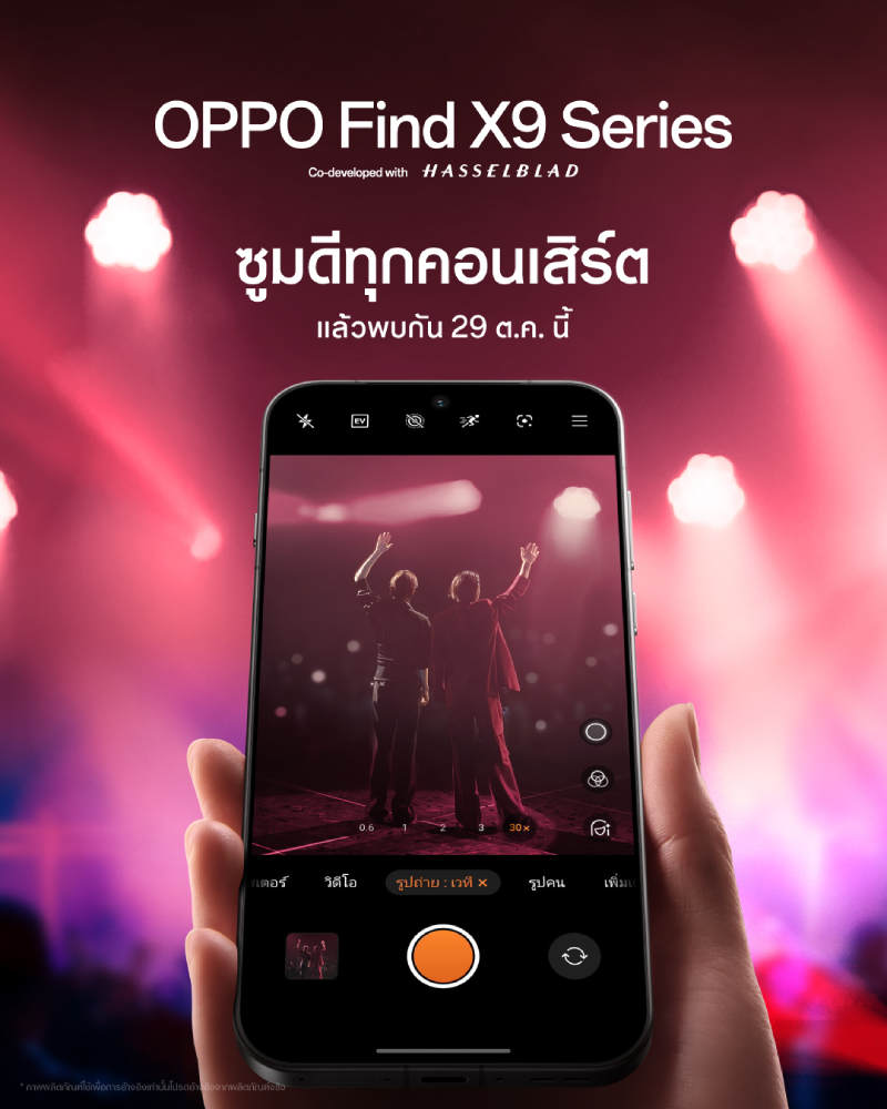 ออปโป้ ไทยแลนด์ ตอกย้ำประสบการณ์ใช้งานที่เหนือกว่า เตรียมส่งสมาร์ตโฟนแฟลกชิปที่สุดแห่งปี OPPO Find X9 Series สมาร์ตโฟนซูมดีทุกคอนเสิร์ต ด้วยการมาของกล้อง 200MP Hasselblad Telephoto คมชัดทุกการถ่ายภาพ ตอบโจทย์ทุกสายคอนเสิร์ต