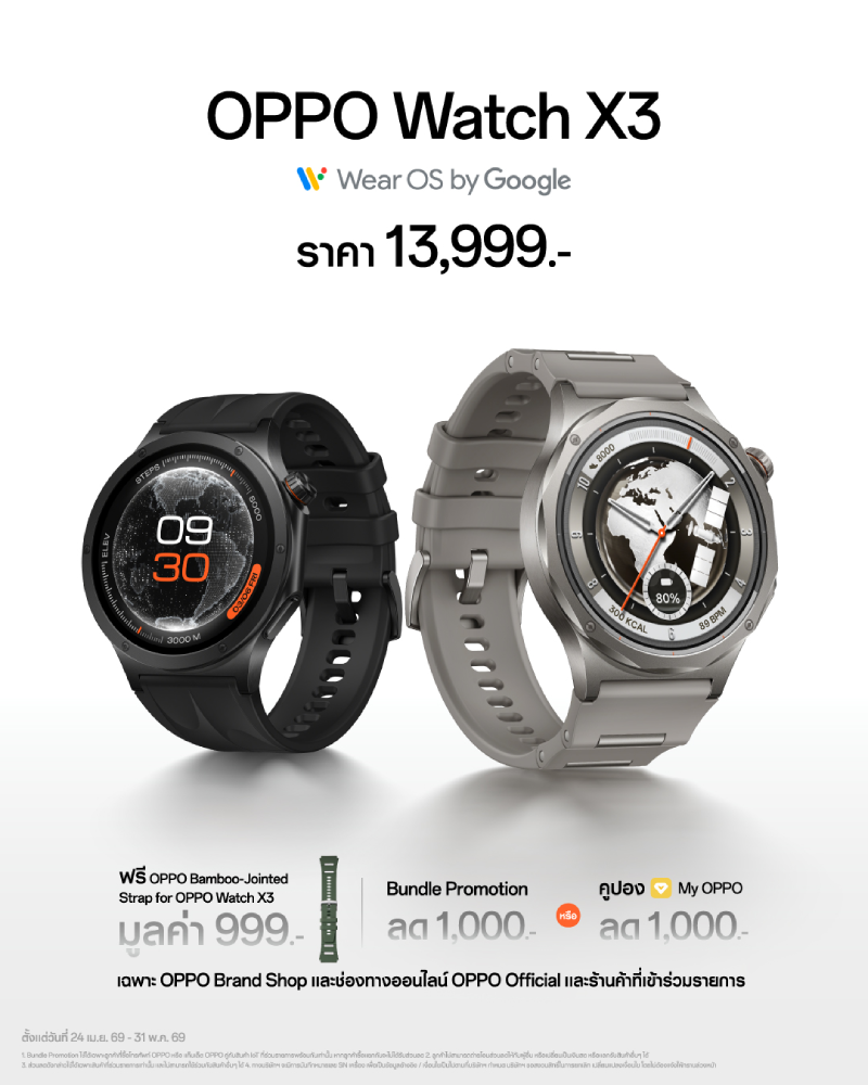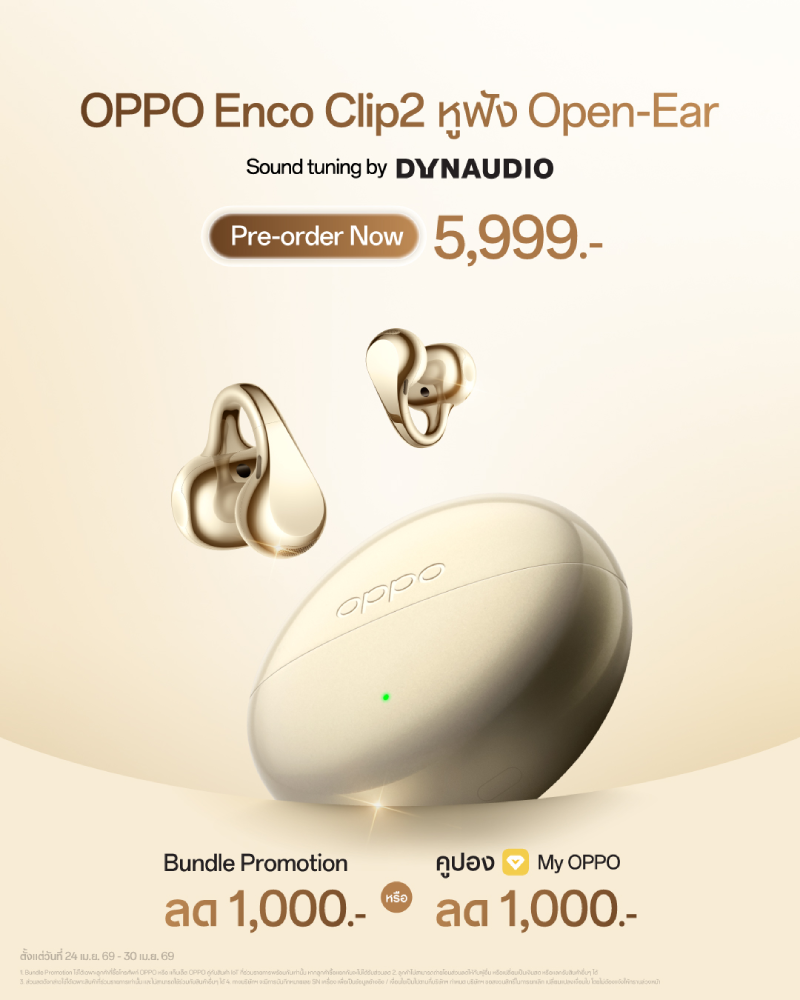 สัมผัสกับ OPPO Find X9 Ultra และ OPPO Find X9s สมาร์ตโฟนกล้องระดับอัลตราที่แท้จริง พร้อมกับหูฟังไร้สาย OPPO Enco Clip2, OPPO Enco Air5 Pro ได้แล้ววันนี้ ณ OPPO Brand Shop ทุกสาขา, ช่องทางออนไลน์ Shopee : shopee.co.th/6AhKZ6Owp9, Lazada : lazada.co.th/s.Zgo0im, Tiktok Shop : tiktok.com/ZS9NMVBEaMS9A-MaQ5n และตัวแทนจำหน่ายทั่วประเทศ ขณะที่ OPPO Watch X3 วางจำหน่ายเฉพาะช่องทางออนไลน์ของ OPPO และ OPPO Brand Shop เท่านั้น