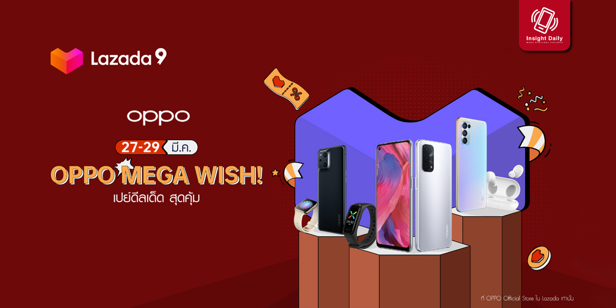 OPPO Mega Wish! ดีลเด็ดสุดคุ้มลดสูงสุด 50% พร้อมของสมนาคุณมากมาย ที่ Lazada วันที่ 27-29 มี.ค. นี้