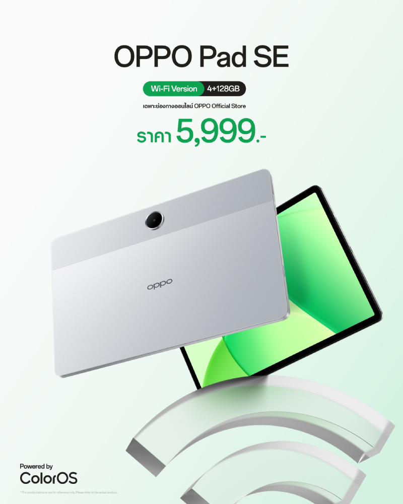 OPPO ประกาศวางจำหน่าย “OPPO Pad SE” แท็บเล็ตสุดคุ้มค่า ที่พร้อมมอบการใช้งานสุดสมาร์ท พร้อมมอบความบันเทิงไร้ขีดจำกัด สนุกตลอดวัน อย่างเป็นทางการในประเทศไทย OPPO Pad SE มาในความจุ 4GB RAM และ 128GB ROM ในราคาเพียง 5,999 บาทเท่านั้น!