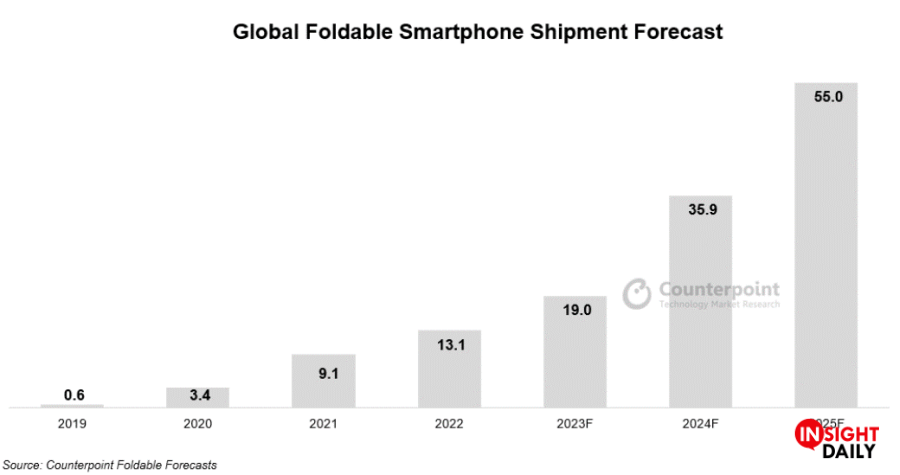 สมาร์ตโฟนจอพับได้ได้รับความนิยมมากขึ้นในช่วงไม่กี่ปีที่ผ่านมานี้นับตั้งแต่เปิดตัวสมาร์ตโฟนกลุ่มนี้ เพื่อเจาะลึกตลาดสมาร์ตโฟนจอพับที่มีการแข่งขันสูง จากการศึกษาของ Counterpoint พบว่าการส่งออกสมาร์ตโฟนจอพับทั่วโลกจะสูงขึ้นถึง 55 ล้านเครื่องภายในปี 2025 ควบคู่ไปกับการก้าวหน้าอย่างมากของแบรนด์สมาร์ตโฟนระดับโลก ผู้ผลิตสมาร์ตโฟนกำลังเปลี่ยนไปโฟกัสไปที่กลุ่มพรีเมียมอย่างมีกลยุทธ์สำคัญ โดยสมาร์ตโฟนจอพับได้กลายเป็นนวัตกรรมสำคัญที่จะมาพลิกเกม ด้วยการนำเสนอประสบการณ์การใช้งานที่ไม่เหมือนใคร