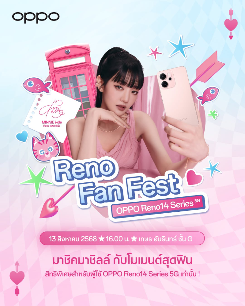 OPPO เตรียมจัดงาน “OPPO Reno14 Series 5G Reno Fan Fest” ชวนฟินไปกับ MINNIE of i-dle