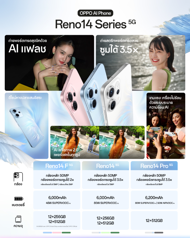 ติดตามรายละเอียดผลิตภัณฑ์เพิ่มเติมได้ที่ www.oppo.com/th/smartphones/series-reno/reno14