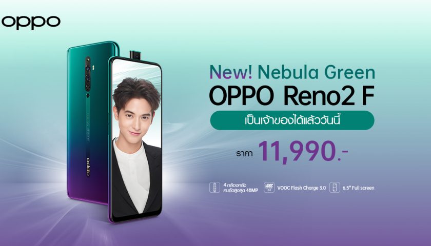 OPPO วางจำหน่าย Reno2 F สีใหม่ Nebula Green Limited Edition