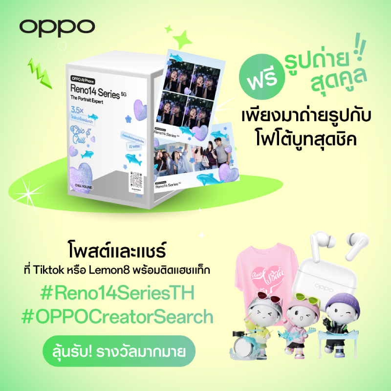 นอกจากคอนเสิร์ตสุดมันส์ที่ขนทัพเหล่าศิลปินมาแบบจัดเต็มแล้ว OPPO ยังยกกิจกรรมพิเศษมาเต็มอิ่ม ไม่ว่าจะเป็น โซน Photobooth สไตล์ Y2K สุดคิวต์ให้เพื่อนซี้มาถ่ายภาพเก็บความประทับใจด้วย OPPO Reno14 Series 5G สมาร์ตโฟนดีไซน์ชิค พร้อมฟีเจอร์ AI Flash Photography ที่ช่วยให้ถ่ายพอร์ตเทรตสวยคมแม้ในที่แสงน้อย ถ่ายทอดตัวตนได้ชัดในทุกโมเมนต์
