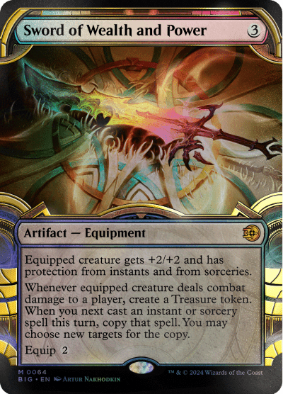 Outlaws of Thunder Junction มีการ์ดรูปแบบพิเศษหลากหลายอย่างด้วยกัน การ์ด Borderless Art จะกลับมาบน Rares และ Mythic Rares บางใบ อีกทั้งยังมี Special Guests 10 ใบที่สามารถเจอได้ทั้งในแบบ Foil และ ไม่ Foil โดยเป็นส่วนหนึ่งของ The List การ์ดเหล่านี้สามารถได้จาก Play Booster และ Collector Booster