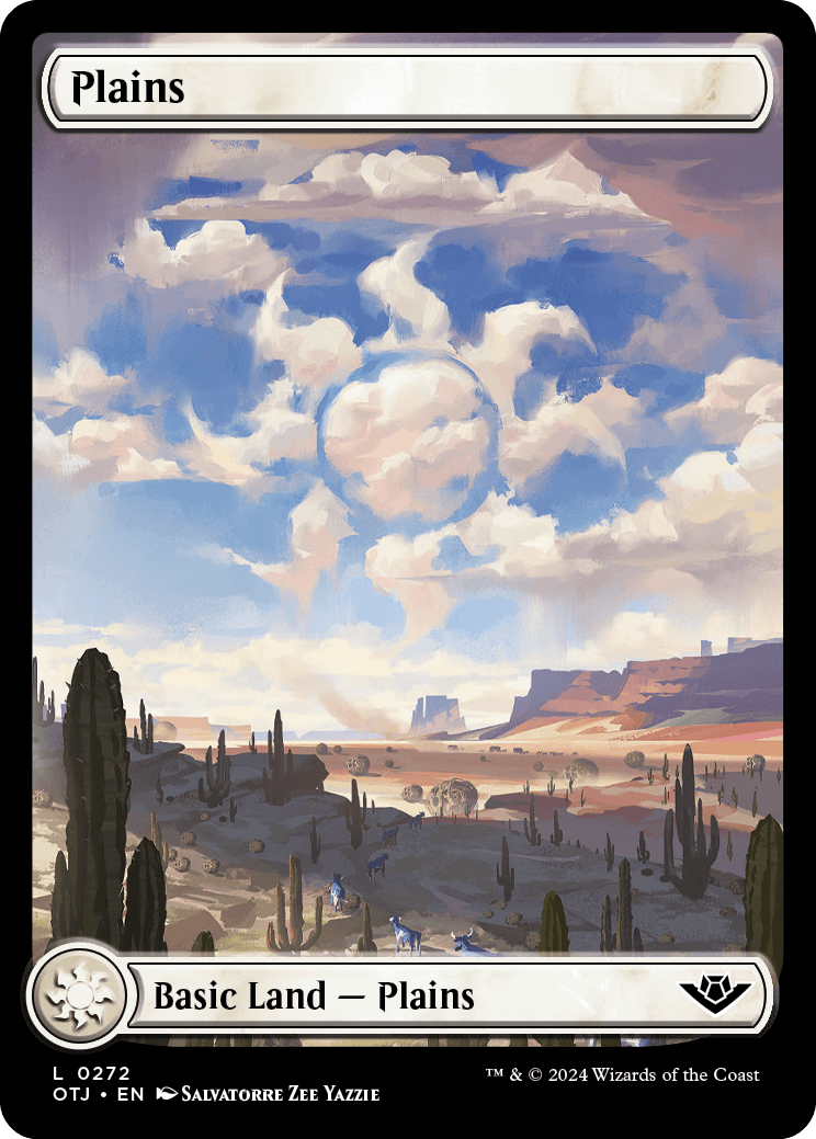 เพื่อแสดงให้เห็นถึงจิตวิญญาณของโลกธีมคาวบอย Outlaws of Thunder Junction จะมีการ์ดประเภท Full-Art Basic Lands ที่เก็บบรรยากาศอันน่าประทับใจของโลกนี้ โดยแม้ว่า Thunder Junction จะเต็มด้วยอาชญากรรม แต่ปฏิเสธไม่ได้เลยว่าธรรมชาติของโลกนี้นั้นสวยงามน่าตื่นตะลึงมาก!