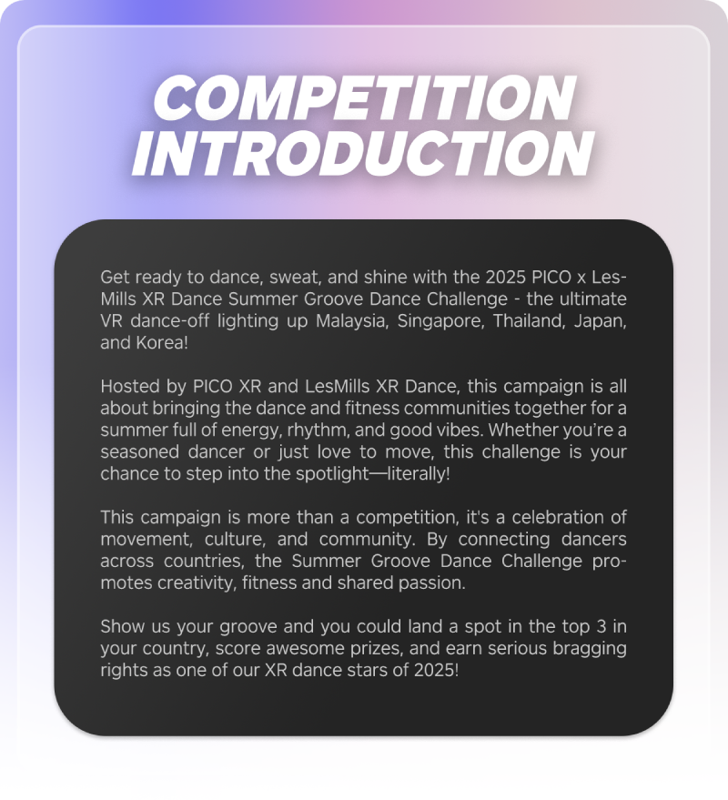 โดยหลังสิ้นสุดการแข่งขัน ผู้เข้าร่วมกิจกรรมทุกท่านจะมีสิทธิ์ รับบัตรกำนัลส่วนลด 30% สำหรับเกม LesMills XR Dance บน PICO Store