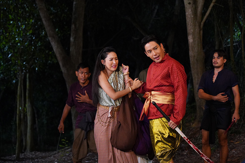 งานนี้ด้วยโลเคชันกลางป่า บวกกับเวลาในการถ่ายทำเป็นเวลากลางคืน ทำให้อุปสรรคในการแสดงฉากดรามาของอาร์ต และ เฌอเบลล์ คือ ยุงและเหล่าแมลง ที่ต้องมีสมาธิโฟกัสในการแสดงสูงมาก บอกเลยว่าใครที่ได้ดูฉากนี้ ก็อาจจะน้ำตาไหล และอดสงสารสองตัวละครหมื่นคีรีและแม่แพรทองโดยไม่รู้ตัว ส่วนปรัชญ์ พูดได้เลยว่า จบจากอีพี 1 ไปก็เตรียมรับคำสาปจากแฟนละครได้เลย เพราะเลวสะใจ