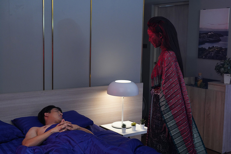 โดยเป็นฉากที่ แม่ย่าวังตะเคียน หรือ ‘แพรทอง’ (เฌอเบลล์) เห็น ‘เมธินี’ (ฝ้าย) กำลังเล่นจ้ำจี้กับ ‘รังสิวัฒน์’ (ปรัชญ์) จึงเอาความไปบอก ‘ธีรัช’ (อาร์ต) แต่ธีรัชไม่เชื่อกลับไล่ตะเพิดแพรทอง ทำให้แพรทองเสียใจมาก แต่ด้วยความที่อยากจะช่วยอดีตคนรักจึงขอจัดการด้วยตัวเอง แปลงกายเป็นแม่ย่าวังตะเคียนเวอร์ชันดาร์ก บีบคอรังสิวัฒน์ถึงเตียง
