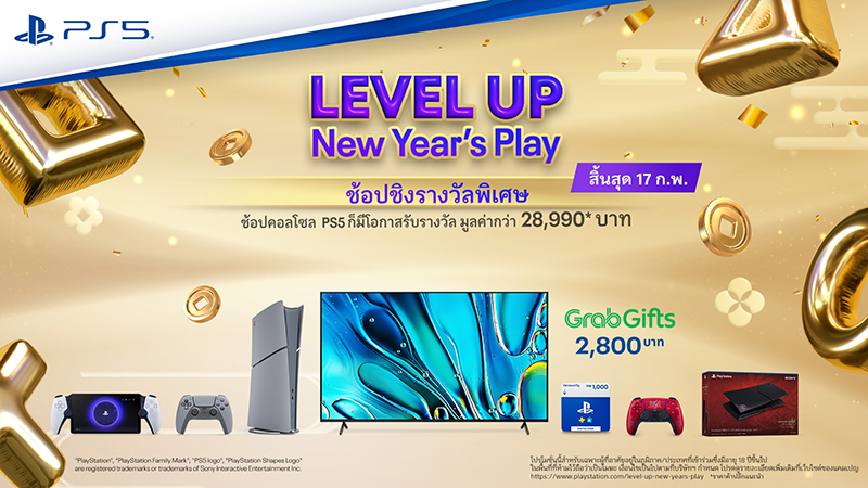 Sony Interactive Entertainment เปิดศักราชใหม่ด้วยการมอบโปรโมชันสุดพิเศษต้อนรับเทศกาลตรุษจีนเอาใจแฟนๆ PlayStation กับแคมเปญ Level Up New Year’s Play ที่มาพร้อมส่วนลดพิเศษสำหรับคอนโซล PlayStation®5 และกิจกรรมร่วมสนุกชิงของรางวัลสุดคุ้มอีกมากมาย