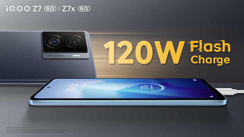 iQOO Z7 5G สมาร์ตโฟนที่หลายคนตั้งตารอ พร้อมที่จะปฏิวัติวงการสมาร์ตโฟน ด้วยเทคโนโลยีที่สร้างความตื่นเต้นได้เหนือกว่า อย่างเทคโนโลยีชาร์จไว FlashCharge 120W ให้ทุกโมเมนต์ไม่มีสะดุด เอาใจคนที่ชื่นชอบสัมผัสเทคโนโลยีใหม่ๆ โดยเฉพาะ Gen Z ที่ไลฟ์สไตล์มีความตื่นตัวตลอดเวลา สมาร์ตโฟนจึงเป็นสิ่งที่ขาดไม่ได้สำหรับการใช้ชีวิตแบบเร่งรีบ เทคโนโลยี FlashCharge 120W จึงช่วยให้ผู้ใช้เพลิดเพลินกับประสบการณ์การชาร์จที่รวดเร็วและมีประสิทธิภาพ สามารถใช้เวลากับสมาร์ตโฟนเครื่องโปรดได้นานยิ่งขึ้น โดยใช้เวลาชาร์จสั้นลง ไม่ต้องรอนาน iQOO Z7 5G จึงเป็นสมาร์ตโฟนที่ล้ำหน้า พร้อมสมรรถนะการใช้งานที่แข็งแกร่ง ช่วยให้ผู้ใช้ปลดปล่อยความคิดสร้างสรรค์สู่การเป็นผู้นำสมาร์ตโฟนที่พร้อมฉีกทุกข้อจำกัดของการใช้งานเมื่อเทียบเซกเมนต์เดียวกันแบบหมัดต่อหมัด