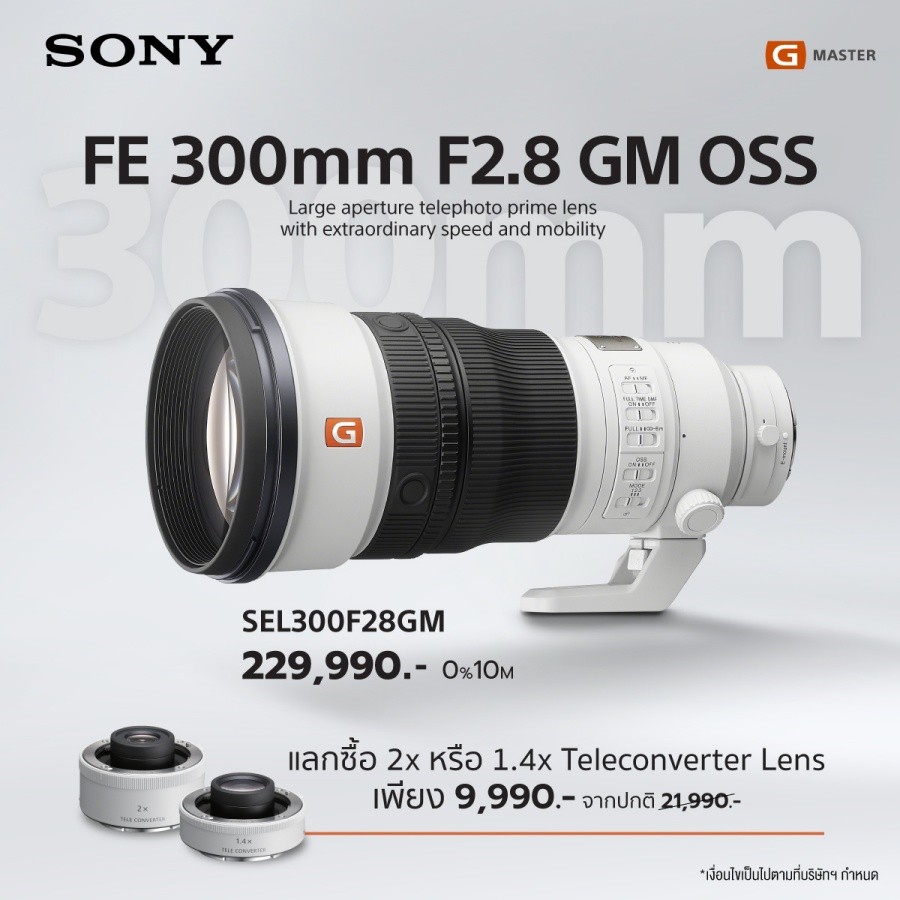 - พิเศษ! สำหรับลูกค้าจอง Alpha 9 III ลงทะเบียน My Sony ระหว่างวันที่ 9 – 29 ก.พ. 2567 รับโค้ดส่วนลด 2,000 บาท สำหรับซื้อสินค้าที่ร้าน Sony Store และ Sony Store Online เลนส์ G Master รุ่น FE 300mm F2.8 GM OSS (รุ่น SEL300F28GM)