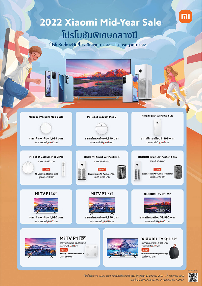 พบโปรโมชัน 2022 Xiaomi Mid-Year Sale ได้ตั้งแต่วันที่ 17 มิถุนายน – 17 กรกฎาคม 2565 ณ Xiaomi Store และร้านค้าที่ร่วมรายการทั่วประเทศ