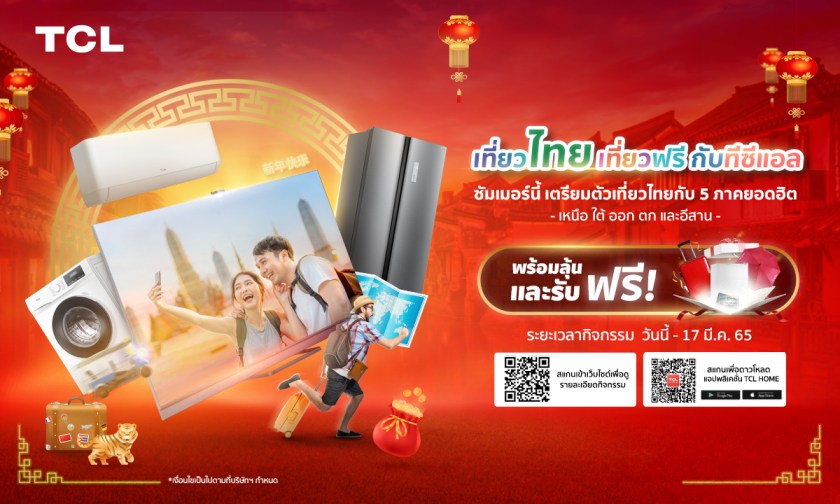 TCL จัดโปรต้อนรับตรุษจีน ชวนช็อปลุ้น “เที่ยวไทยเที่ยวฟรีกับทีซีแอล”