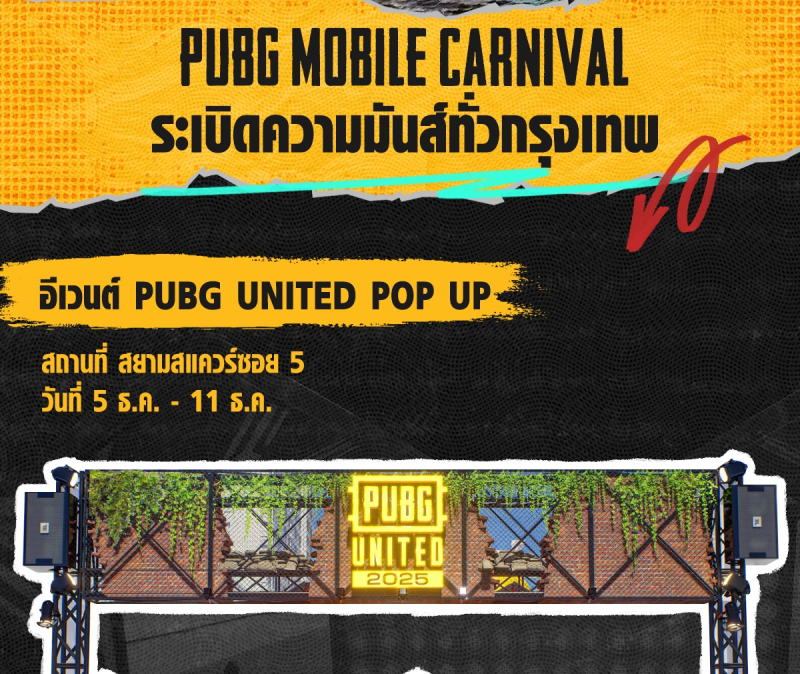 งาน Bangkok PUBG MOBILE Carnival คือความร่วมมือครั้งสำคัญที่นำเสนอกิจกรรมสุดเร้าใจ ณ สยามสแควร์ ซอย 5 ตั้งแต่วันที่ 5 – 11 ธันวาคม 2568 แฟน ๆ ที่มาร่วมงานจะได้สัมผัสความสนุกสนานตื่นเต้นในแบบฉบับ Porsche ที่บูธ PUBG UNITED x Porsche ให้คุณถ่ายภาพกับยานยนต์ ปอร์เช่ 911 ทั้งสองรุ่น พร้อมร่วมเฉลิมฉลองความร่วมมือเปิดตัวในเกม โดยจะมีการนำลายสติกกเกอร์แต่งรถยนต์ที่ร่วมกันสร้างสรรค์ รวมถึงรุ่นยอดนิยมอย่าง 918 Spyder, 911 Carrera และ Cayenne มาประชันกันในสนามรบอย่างดุเดือด