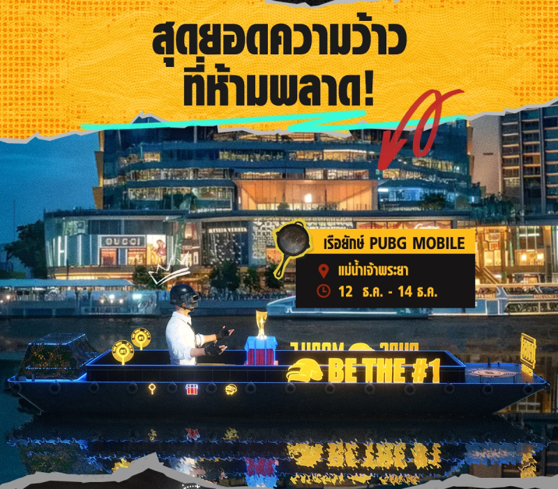 นอกจากนี้ เรือยักษ์ PUBG MOBILE จะล่องไปตามแม่น้ำเจ้าพระยาระหว่างวันที่ 12 – 14 ธันวาคม 2568 บริเวณใกล้กับไอคอนสยามในช่วงการแข่งขัน PMGC รอบสุดท้าย พร้อมจัดแสดงประติมากรรม Lone Survivor สูง 7.2 เมตร พร้อมกางแขนต้อนรับผู้เล่นและผู้มาเยือนจากทั่วโลก โดยเรือจะแล่นไปตามเส้นทางจากสะพานพระปกเกล้า ไปทางสะพานสมเด็จพระเจ้าตากสินมหาราช