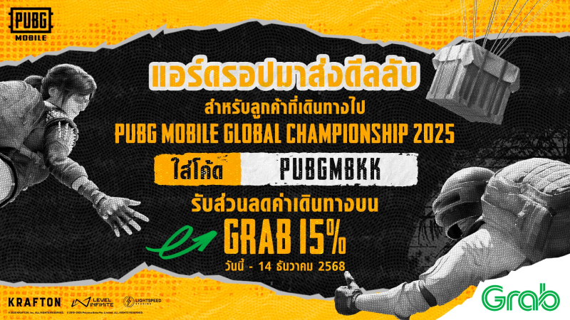 ในขณะเดียวกัน แกรบ (Grab) บริการเรียกรถโดยสารยอดฮิตร่วมมือกับ PUBG MOBILE มอบสิทธิพิเศษสำหรับผู้โดยสารที่จะเดินทางไปงาน PMGC รอบสุดท้ายด้วยส่วนลด 15% พร้อมทั้งโปรโมตรายการ PMGC ด้วยขบวนรถธีมที่ร่วมออกแบบกับ PUBG MOBILE ในวันที่ 29 พฤศจิกายน 2568 ที่ผ่านมา