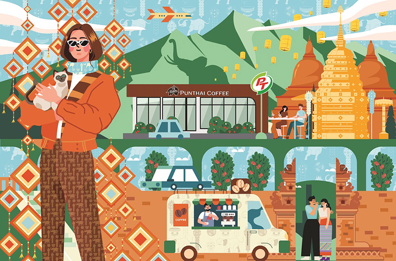 กาแฟพันธุ์ไทย จับมือศิลปินไทย อัง – วิพุธ อัศวเวทวุฒิ หรือ Viput A. คนรุ่นใหม่ผู้เชื่อมั่นในการถ่ายทอดพลังบวกผ่านงานศิลปะ ชูอัตลักษณ์ไทยร่วมสมัยสู่งานดีไซน์บน “รถฟู้ดทรัคพันธุ์ไทย” ตอกย้ำ DNA แบรนด์ไทยที่เปิดกว้างทุกความคิดสร้างสรรค์ ในคอนเซ็ปต์ “เอกลักษณ์ไทย 4 ภาค”