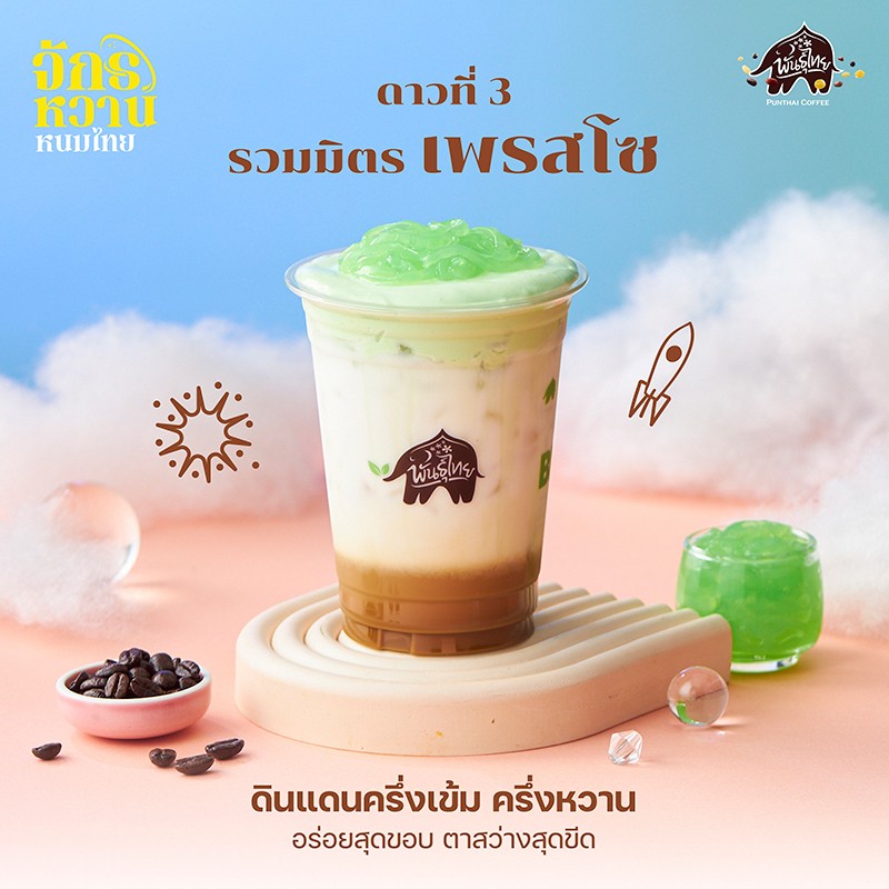 พันธุ์ไทย ส่งภาคต่อของ ไทยดีย์เสริฐ 2022 ขนมไทยในรูปแบบเครื่องดื่มที่หลายคนติดใจ มาเสิร์ฟให้หายคิดถึง กับแคมเปญล่าสุดแห่งปี “จักรหวานหนมไทย” (Punthai Sweetiverse) มิติใหม่! ของขนมไทยดื่มได้ ตอบโจทย์ Creative Thai Taste ที่เป็น DNA ของพันธุ์ไทย ด้วยแรงบันดาลใจจากกะทิใบเตยที่เป็นเอกลักษณ์ของขนมไทย มาสร้างสรรค์เป็น 3 เมนูใหม่ ที่สายหวานต้องทัชใจอร่อยทุกเมนู