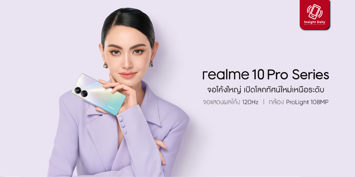 realme (เรียลมี) แบรนด์เทคโนโลยีเพื่อคนรุ่นใหม่ที่เติบโตเร็วที่สุดในโลก เตรียมสร้างปรากฏการณ์ให้กับวงการสมาร์ตโฟนโลกอีกครั้ง กับ realme 10 Pro Series ชูไฮไลต์ดีไซน์แห่งโลกอนาคตแบบ “ไฮเปอร์​สเปซ” (Hyperspace) ที่ได้แรงบันดาลใจจากแนวคิดอุโมงค์ไฮเปอร์สเปซที่อลังการด้วยเส้นแสง 3 มิติกับเอ็ฟเฟ็กต์สุดตระการตาทั้ง Prism Acceleration Pattern และ Nebula Particles สื่อถึงประสิทธิภาพที่เร็วแรงระดับซูเปอร์อัลตร้าที่มากับสมาร์ตโฟนรุ่นนี้ พร้อมจอ Refresh Rate สูง 120Hz ตอบโจทย์ทุกการใช้งานด้วยอนิเมชันที่ไหลลื่นเนียนตาขั้นสุด ผสานเทคโนโลยีการปรับความสว่างหน้าจอสุดล้ำถึงระดับ 2160Hz PWM ซึ่งมีประสิทธิภาพและเป็นมิตรต่อดวงตาสูงสุดของโลกสมาร์ตโฟนปัจจุบัน ช่วยให้แสดงสีสันได้อย่างเที่ยงตรงและคมชัดในทุกระดับความสว่าง และที่ขาดไม่ได้คือการอัปเกรดเทคโนโลยีกล้องถ่ายภาพด้วยการออกแบบเลนส์กล้องหลักแบบ Twin-lens Reflex (TLR) เพื่อยกระดับการถ่ายภาพ โดยเฉพาะการเก็บภาพแนวสตรีตหรือแนวอาร์ตเก๋ ๆ ที่หนุ่มสาวยุคใหม่ต้องการจากกล้องถ่ายภาพในวันนี้ รวมถึงฟีเจอร์เด็ดอีกมากมายที่จะมอบประสบการณ์ระดับเรือธงได้อย่างสมบูรณ์แบบ และแน่นอน ด้วยระดับราคาที่เข้าถึงง่ายกว่าแฟล็กชิปทั่วไป เพื่อมอบความความคุ้มค่าแก่ผู้ใช้สูงสุดตามสไตล์ realme