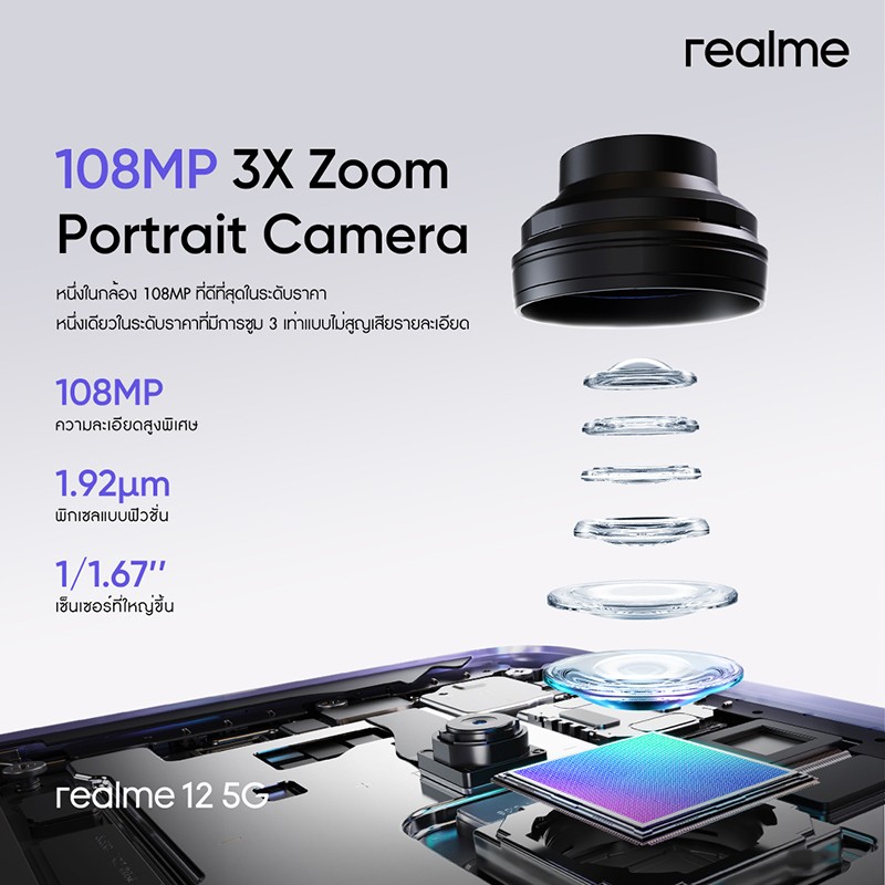 หลังสร้างปรากฏการณ์ The New Portrait Master ที่มาพร้อมแคมเปญกิจกรรมการถ่ายภาพสุดปังแห่งปี Make It Real! สร้างความตื่นตาตื่นใจให้กับวงการสมาร์ตโฟนเมืองไทยไปตามคาด โดยชูไฮไลต์ฟีเจอร์ครั้งแรกและหนึ่งเดียวในเซกเมนต์อย่าง เทคโนโลยีกล้องซูมเพอริสโคป ใน realme 12Pro+ 5G และเทคโนโลยี SuperOIS ครั้งแรกของเซกเมนต์ใน realme 12+ 5G ซึ่งถูกอกถูกใจทั้งสายถ่ายภาพ Portrait และ Street Photography เป็นอย่างมาก วันนี้เพื่อตอบรับเสียงเรียกร้องของกลุ่มผู้ใช้งานสายบัดเจ็ตที่ต้องการสัมผัสประสบการณ์การถ่ายภาพขั้นสูงในราคาเบาๆ realme Thailand ซุ่มนำเข้ามือถือรุ่นน้องอีก 2 รุ่นในตระกูลเดียวกัน ทั้ง “realme 12 5G” และ “realme 12X 5G” เพื่อผู้ใช้งานชาวไทยได้เป็นเจ้าของกัน