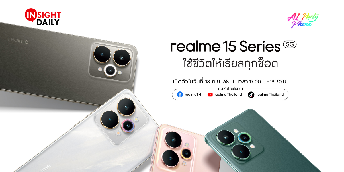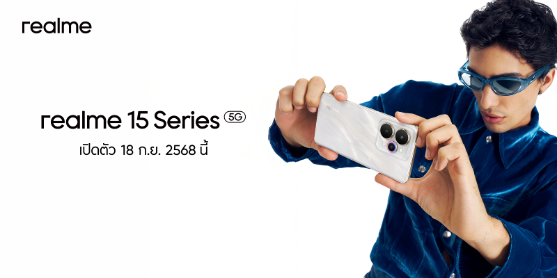 เตรียมพบกับปรากฏการณ์ครั้งใหม่! เมื่อ realme แบรนด์สมาร์ตโฟนเพื่อคนรุ่นใหม่ที่เติบโตเร็วที่สุดในโลก พร้อมสร้างสีสันอันน่าตื่นตาให้กับวงการมือถืออีกครั้ง กับการเปิดตัว “realme 15 Series 5G” ที่มาพร้อมกันถึง 2 รุ่น ได้แก่ realme 15 Pro 5G, realme 15 5G ซีรีส์ใหม่นี้ ยกระดับประสบการณ์สมาร์ตโฟนด้วยสมญานาม “AI Party Phone” ภายใต้การเป็น “Your Colorful Partners” ที่มาพร้อมดีไซน์สีสันสดใส ออกแบบมาเพื่อเป็นเพื่อนคู่ใจในทุกโมเมนต์ของชีวิต ให้คุณสนุกได้เต็มที่ทั้งการทำงาน ความบันเทิง และปาร์ตี้สุดมันส์ อีกทั้งยังโดดเด่นด้วย แบตเตอรี่ Titan ขนาด 7,000 mAh ที่บางที่สุดในเซ็กเมนต์ ผสานความบางเบา สีสันสดใส และพลังทรงประสิทธิภาพไว้อย่างลงตัว