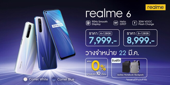 เตรียมวางจำหน่าย realme 6 Pro ในวันที่ 19 มี.ค. และ realme 6 ในวันที่ 22 มี.ค.นี้ พร้อมโปรโมชั่นพิเศษผ่อน 0%