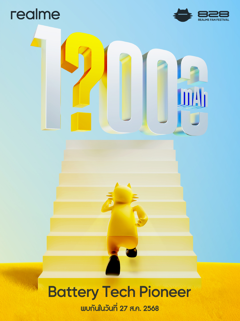 realme เตรียมเปิดตัวนวัตกรรมแบตทะลุ 10,000mAh ฉลองเทศกาล 828 Anniversary