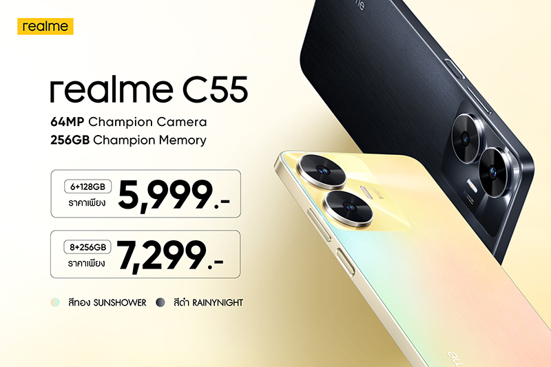 เรียลมี เปิดตัว 2 สมาร์ตโฟนที่ทุกคนรอคอย realme C55 และ realme 10T 5G