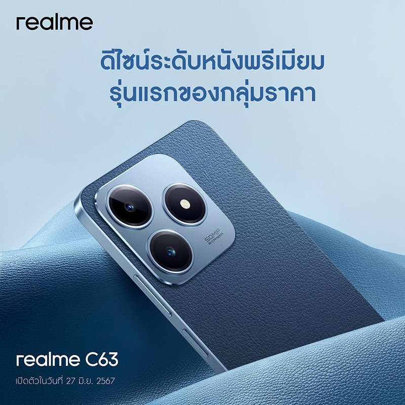 เตรียมพบ “realme C63” สมาร์ตโฟนน้องใหม่ ฝาหลังหนังวีแกนกรดพรีเมียม พร้อมชาร์จไว 45W!