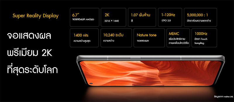 จอแสดงผล Super Reality ของ realme GT 2 Pro ระดับ 2K AMOLED ได้คะแนนจาก DisplayMate ระดับ A+