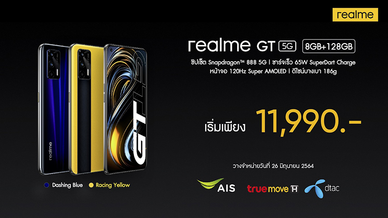 พิเศษ สำหรับลูกค้า AIS TrueMoveH และ dtac เป็นเจ้าของ realme GT 5G ในราคาเริ่มต้นเพียง 11,990 บาท