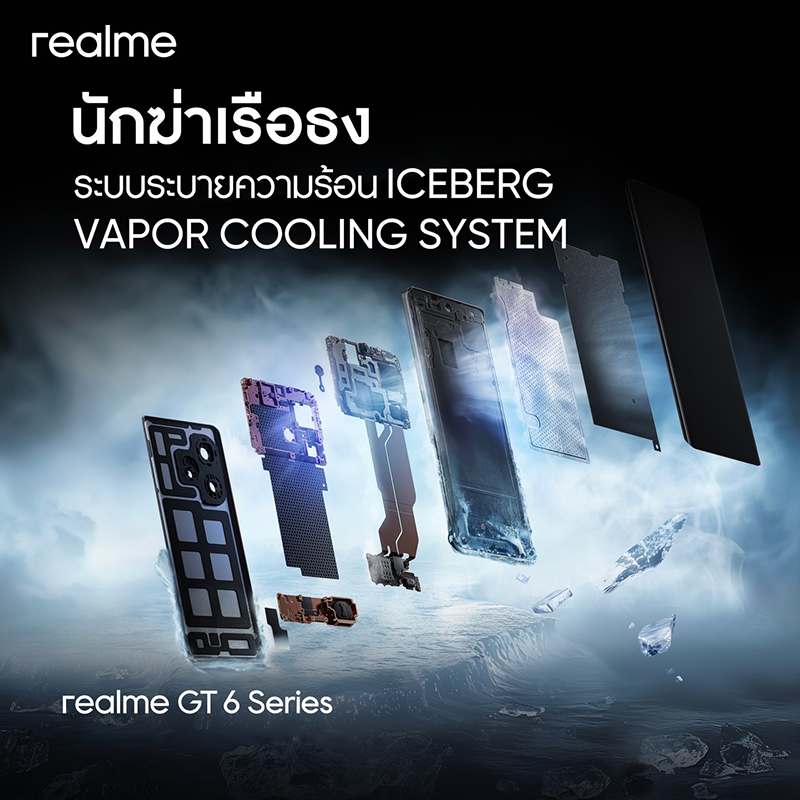 นอกจากจอแสดงผลและชิปเซ็ตชั้นแนวหน้าของอุตสาหกรรม realme GT 6 Series ยังมาพร้อมฟีเจอร์ระดับสูงมากมายเพื่อมอบความมั่นใจถึงประสิทธิภาพขั้นสูงสุด โดยมีทั้งฟีเจอร์การระบายความร้อนแบบ Iceberg Vapor Cooling System พร้อมแผ่นกระจายความร้อนขนาดใหญ่กว่า 10,000 ตารางมิลลิเมตร เพื่อการกระจายความร้อนที่มีประสิทธิภาพและการทำงานที่ไหลลื่น นอกจากนี้ยังให้แบตเตอรี่ขนาดใหญ่ถึง 5500mAh ที่มีอายุการใช้งานยาวนาน แม้ผ่านการชาร์จถึง 1,600 รอบก็ยังรักษาความจุไฟได้ถึง 80% คุณจึงมั่นใจได้ถึงการใช้งานที่ยาวนานในทุกวัน โดยเฉพาะเทคโนโลยีการชาร์จเร็ว 120W SUPERVOOC ซึ่งสามารถชาร์จไฟ 50% ในเวลาเพียง 10 นาทีเท่านั้น อีกทั้งยังมอบความสวยงามของการออกแบบฝาหลังที่ประณีตสวยงาม จากกระบวนการผลิตมากกว่า 30 ขั้นตอน