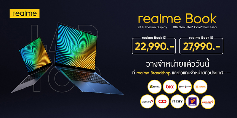 นอกจากนี้ realme ได้ประกาศขยายผลิตภัณฑ์เทคโนโลยีในหมวดแล็ปท็อปเป็นครั้งแรกกับ realme Book ที่มาพร้อมจอแสดงผลแบบ Full Vision ขนาด 14 นิ้ว ความละเอียด 2K ขับเคลื่อนด้วยโปรเซสเซอร์ Intel® Core เจนเนอเรชั่น 11 และระบบระบายความร้อนแบบคู่ ช่วยให้สามารถเล่นเกมหรือทำงานได้อย่างมีประสิทธิภาพไม่สะดุด รองรับเทคโนโลยี Super-Fast Charge 65W สามารถใช้งานยาวนานได้สูงสุด 11 ชั่วโมง มีลำโพง HARMAN 2 ตัว รองรับเอฟเฟกต์เสียงสเตอริโอ DTS HD สามารถตัดเสียงรบกวนแบบ Dual Mic เหมาะสำหรับการทำงานและการเรียนออนไลน์ และดีไซน์ตัวเครื่องที่บางเฉียบ 14.9 มม. มีให้เลือก 2 สี ได้แก่ สีน้ำเงิน และสีเทา มาพร้อมกันใน 2 ราคา และ 2 ความจุ ได้แก่