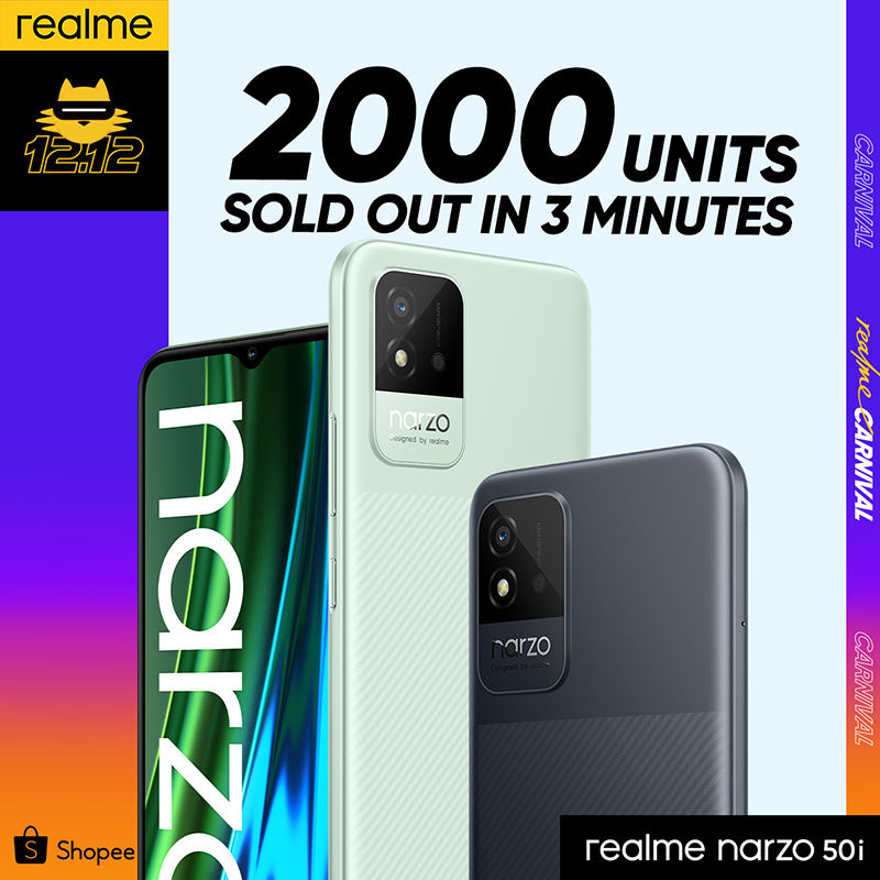 อีกหนึ่งความสำเร็จ คือ realme ยังเป็นแบรนด์ยอดขายอันดับ 2 ในกลุ่มสินค้าสมาร์ตโฟนและแท็บเล็ต บนแพลตฟอร์ม Shopee  พร้อมทั้งสามารถทำยอดขายสมาร์ตโฟน “realme narzo 50i” ที่สามารถขายได้ 2,000 เครื่อง ภายใน 3 นาทีเท่านั้น และในส่วนช่องทาง Lazada ก็ยังสามารถครองตำแหน่งแบรนด์ยอดจำหน่ายอันดับ 1 ในกลุ่มสินค้าสมาร์ตโฟนและแท็บเล็ต บนแพลตฟอร์ม Lazada ได้เช่นเดียวกัน ปรากฏการณ์ทั้งหมดนี้เกิดขึ้นภายในวันเดียวจากการจัดโปรโมชั่นกับแพลตฟอร์มอีคอมเมิร์ซชื่อดังของเมืองไทย