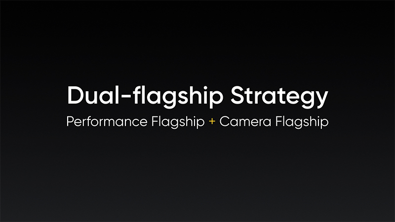 ด้วยเป้าหมายดังกล่าว realme จึงประกาศการใช้กลยุทธ์ “Dual-platform Dual-flagship” โดยสำหรับสมาร์ทโฟนระดับกลางถึงระดับไฮเอนด์ realme จะใช้ชิปเซ็ตในตระกูล Qualcomm Snapdragon 8 series และแพลตฟอร์ม 5G ของ MediaTek Dimensity series นอกจากนี้ยังเปิดตัวซีรีส์เรือธง 2 รุ่น โดยเน้นด้านประสิทธิภาพและกล้องเพื่อนำเสนอผลิตภัณฑ์ระดับพรีเมี่ยมให้กับผู้ใช้งานรุ่นใหม่มากขึ้น ซึ่งกลยุทธ์ “Dual-platform Dual-flagship” จะเป็นจุดเริ่มต้นของการเดินทางครั้งใหม่สำหรับ realme