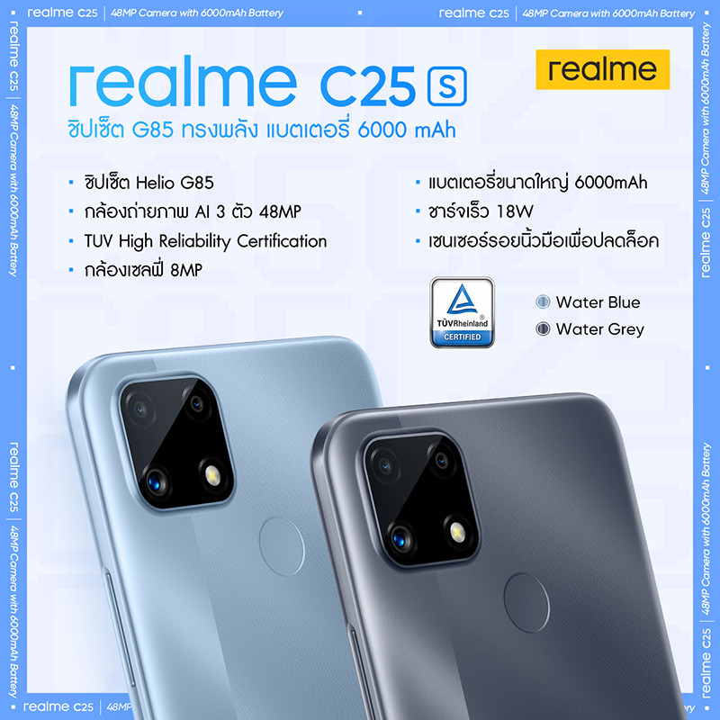 realme เปิดตัว realme C25s สัมผัสชิปเซ็ต Helio G85 เต็มตากับกล้อง AI Triple 48MP พร้อมแบตเตอรี่ 6,000 มิลลิแอมป์ในราคาเพียง 5,499 บาท