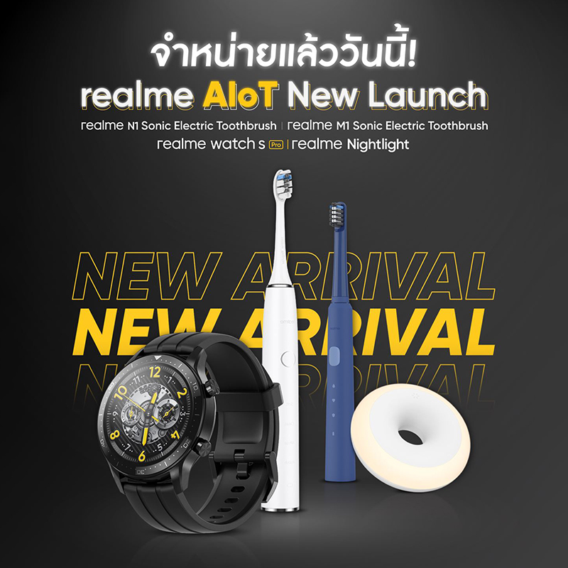 นอกจากนี้ ยังมี Smart Home กับกล้องวงจรปิดอัจฉริยะ และ Smart Care กับเครื่องชั่งน้ำหนักอัจฉริยะ ล่าสุด realme ก้าวสู่การเปิดผู้นำด้านเทคโนโลยีกว่าที่เคย ด้วย realme Watch S Pro สมาร์ทวอทช์อัจฉริยะ พร้อมฟังก์ชั่นระดับโปร พร้อม realme Motion Activated Night Light ดวงไฟตัวช่วยยามค่ำคืนของคุณ และผลิตภัณฑ์ AIoT ใหม่ในหมวดของ Smart Care เพื่อใกล้ชิดผู้ใช้งานในชีวิตประจำวันมากกว่าที่เคยด้วย realme Sonic Electric Toothbrush แปรงสีฟันไฟฟ้าโซนิค โดยมาพร้อมกันถึง 2 รุ่น ได้แก่ realme M1 Sonic Electric Toothbrush และ realme N1 Sonic Electric Toothbrush ครบครันด้วยนวัตกรรมเทคโนโลยีที่ทันสมัย ผสมผลานกับดีไซน์เพื่อคนรุ่นใหม่ พร้อมมอบประสบการณ์ดูแลสุขภาพช่องปากที่ดีให้ผู้ใช้งานได้สัมผัส
