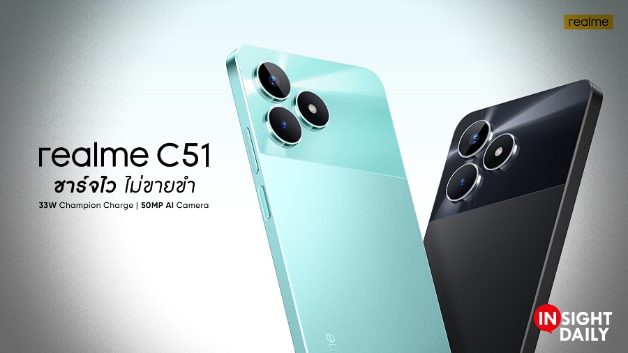 realme สมาร์ตโฟนเพื่อคนรุ่นใหม่ที่เติบโตเร็วที่สุดในโลก เปิดตัว “realme C51” ที่มาพร้อมการอัปเกรดประสิทธิภาพ 4 ฟีเจอร์หลัก เพื่อให้ realme Champion Series มอบประสบการณ์ที่ดีที่สุดในกลุ่มสมาร์ตโฟนระดับ Entry-level ด้วยการยึดมั่นในปรัชญา “No leap, no launch” ทั้งระบบชาร์จไวแบบไม่ขายขำกับ 33W SUPERVOOC ในราคาไม่ถึง 4,500 บาท