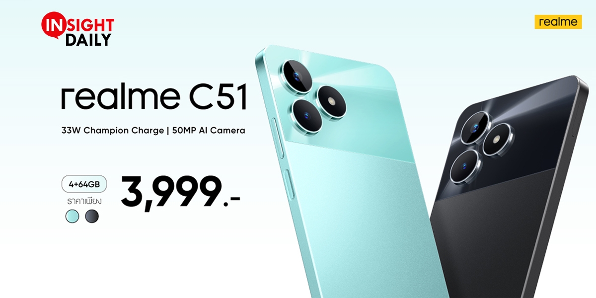 realme C51 พร้อมเขย่าตลาดสมาร์ตโฟน! ตอบโจทย์ทุก ไลฟ์สไตล์ในราคาสุดคุ้มเพียง 3,999 บาท