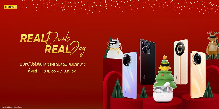 สำหรับผู้ที่พลาดกิจกรรมครั้งนี้ realme ยังมอบดีลสุดพิเศษกับโปรโมชัน “real Deals real Joy” ผ่านช่องทางช็อป AIS, True, DTAC, BaNANA , BKK, Kingkong Phone, IT CITY, TG, Jaymart, MAXLINK, Stamp และ realme Brand Shop ทั่วประเทศ ตั้งแต่วันนี้ ถึง 7 มกราคม 2567 (ดูข้อมูลเพิ่มเติมได้ที่ realme – เริ่มแล้วกับเทศกาลสุดยิ่งใหญ่! real Deals real Joy… | Facebook)