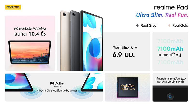 realme Pad นำเสนอ 2 สีทั้ง Real Grey และ Real Gold มีให้เลือกด้วยกัน 3 ความจุ ได้แก่