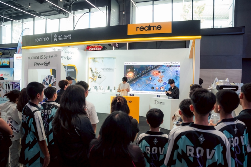 บูธของ realme ได้รับการกล่าวถึงอย่างล้นหลามว่าเป็นหนึ่งในโซนสุดฮอตของงาน ด้วยการออกแบบพื้นที่สุดล้ำ เพื่อเอาใจเหล่าเกมเมอร์ตัวจริง พร้อมกิจกรรมต่อเนื่องตลอดสองวัน ทั้งมินิเกมสุดท้าทาย การแข่งขัน RoV แบบสด ๆ ให้แฟนเกมได้สัมผัสบรรยากาศอีสปอร์ตระดับโปร รวมถึงกิจกรรมสุดพิเศษจากเหล่า KOL และสตรีมเมอร์ชื่อดัง ที่มาร่วมแจกรางวัลสุดเอ็กซ์คลูซีฟแบบเรียลไทม์ตั้งแต่เปิดงานจนถึงช่วงการแข่งขันชิงชนะเลิศ