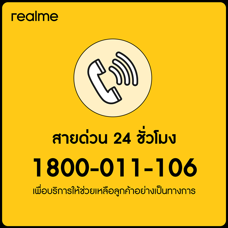 และเพื่อช่วยเหลือผู้ใช้งานที่ได้รับผลกระทบ realme จึงดำเนินการเปิดสายด่วนตลอด 24 ชั่วโมง ที่หมายเลข 1800-011-106 เพื่อรับฟังปัญหาและให้คำปรึกษาแก่ผู้ใช้งานที่ได้รับผลกระทบ ตลอดจนพร้อมให้ความร่วมมือกับองค์กรทุกฝ่ายโดยเร่งด่วน เพื่อให้ความช่วยเหลือทางกฎหมายแก่ผู้ใช้งานต่อไป
