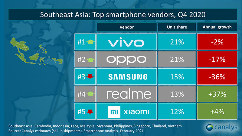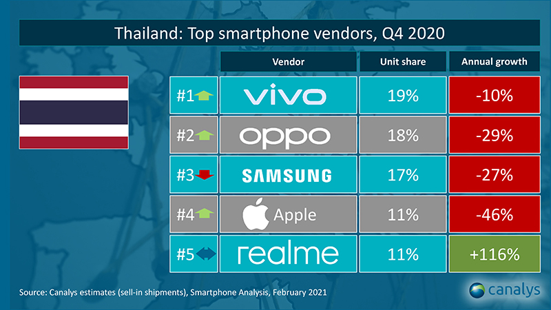 realme ติดอันดับท็อป 5 แบรนด์สมาร์ทโฟนที่มียอดการจัดส่งสูงสุด ใน 15 ประเทศทั่วโลก ในไตรมาสที่ 4 ปี 2020